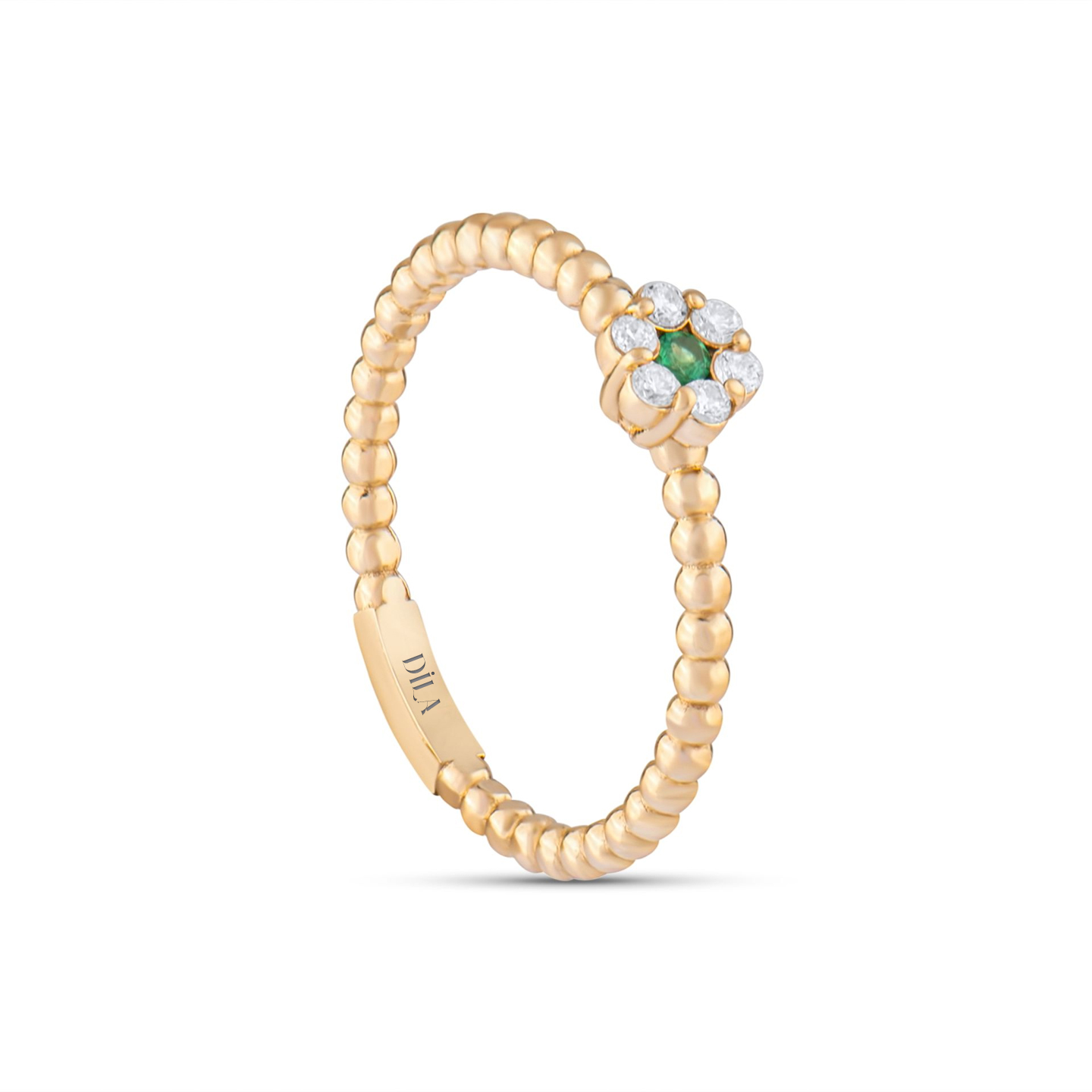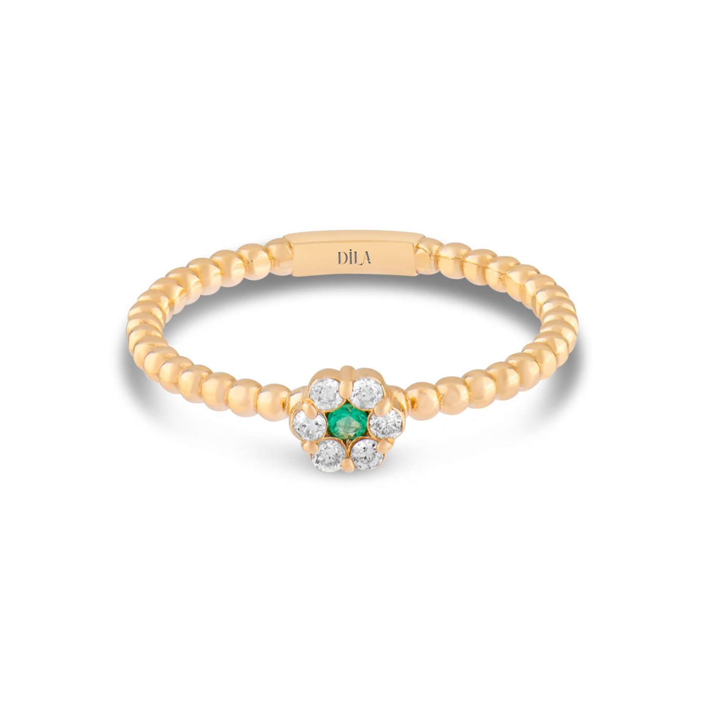 0,12 Karat Pırlantalı Zümrüt Çiçek Yüzük