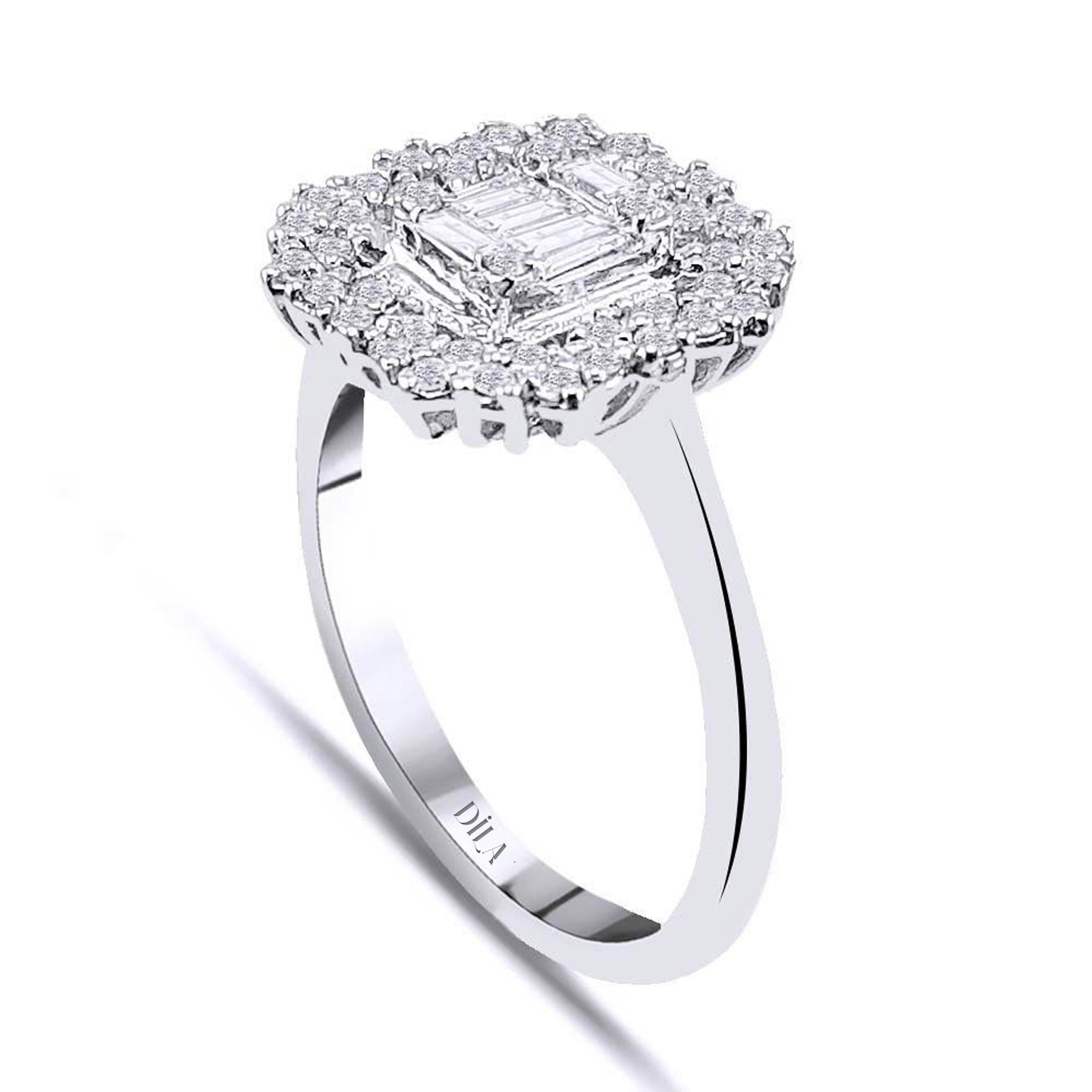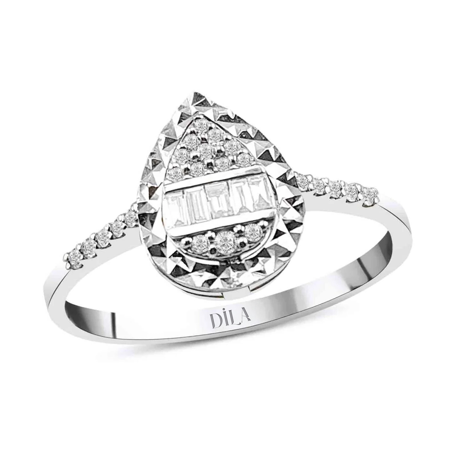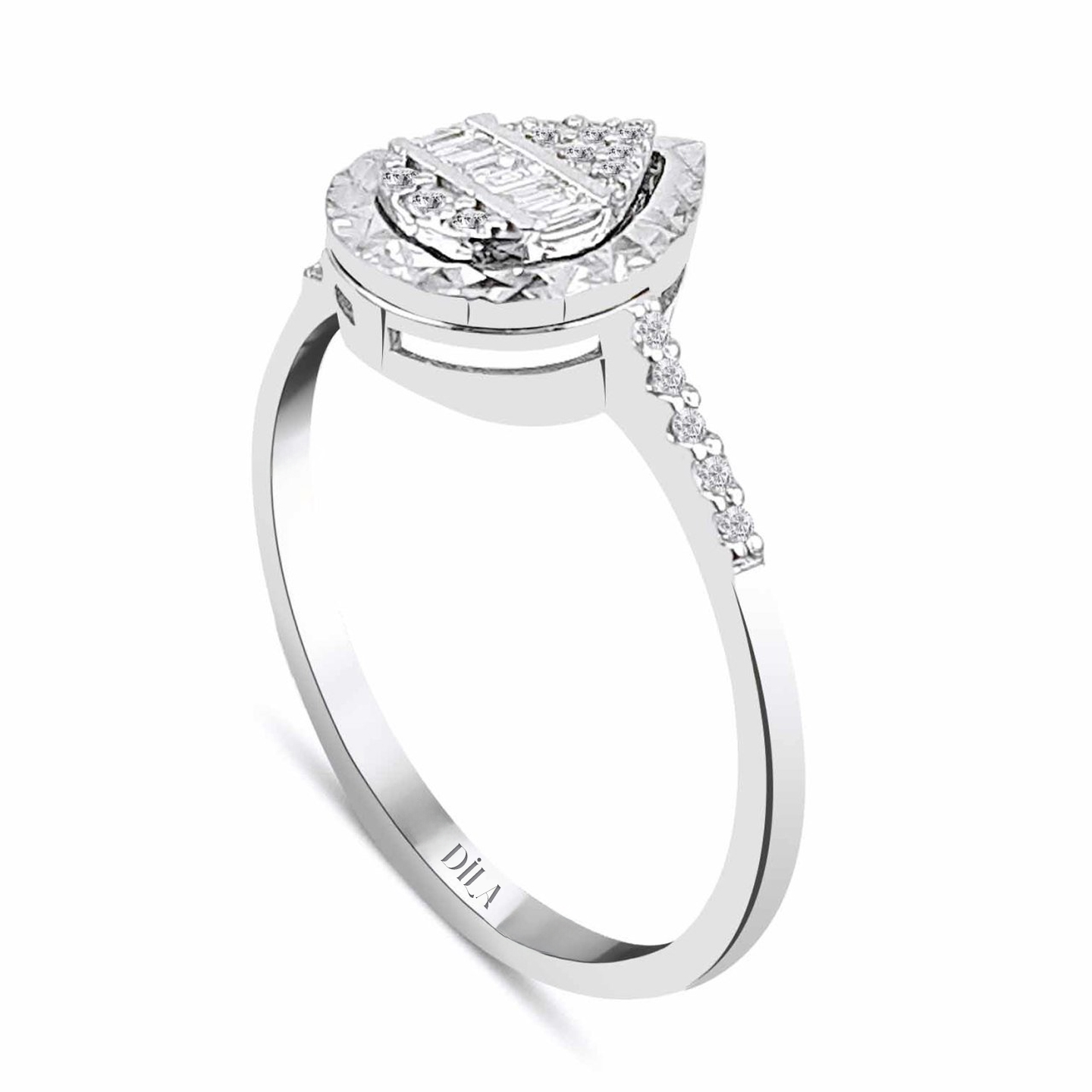 0,20 Karat Pırlanta Efektli Baget Yüzük E-F Renk