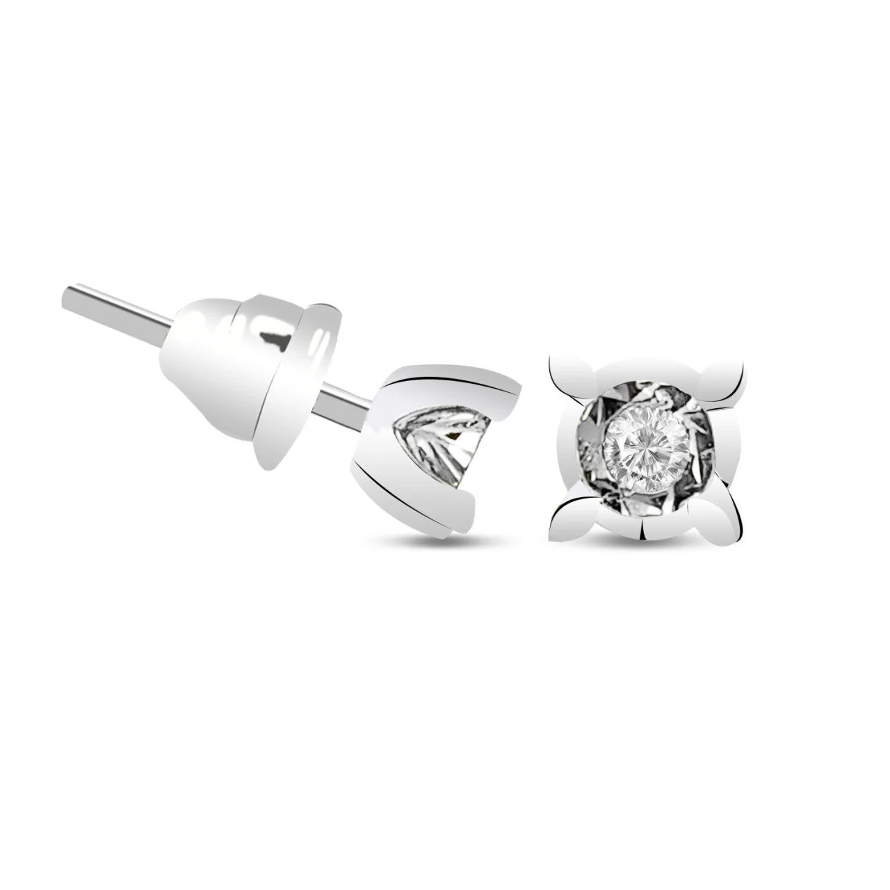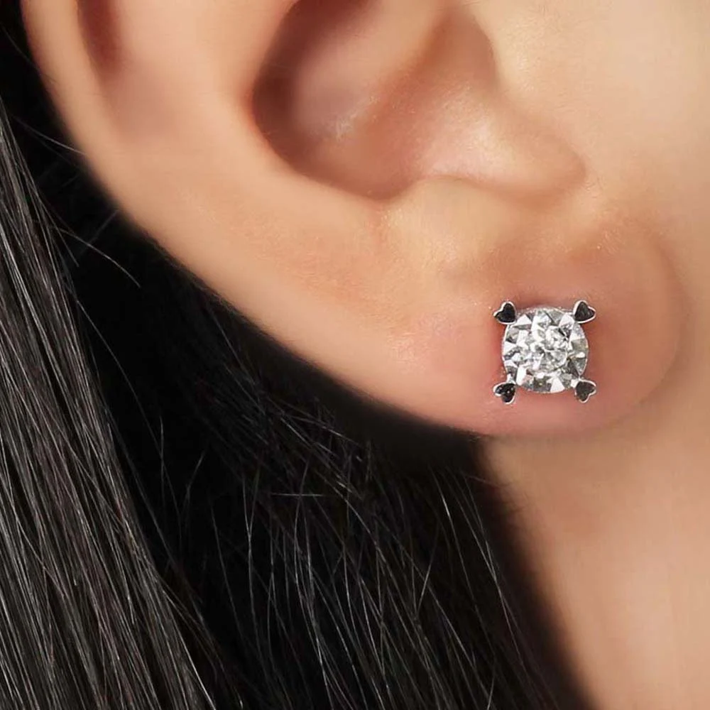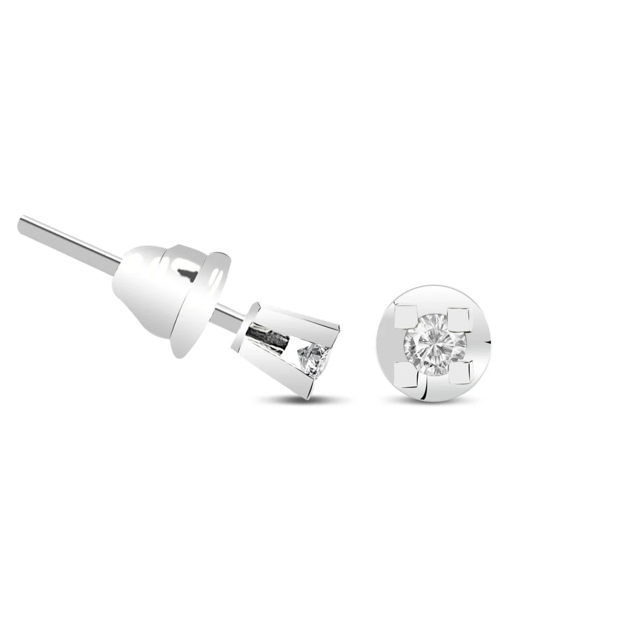 0,20 Karat Pırlanta Tektaş Kalpli Küpe F Renk