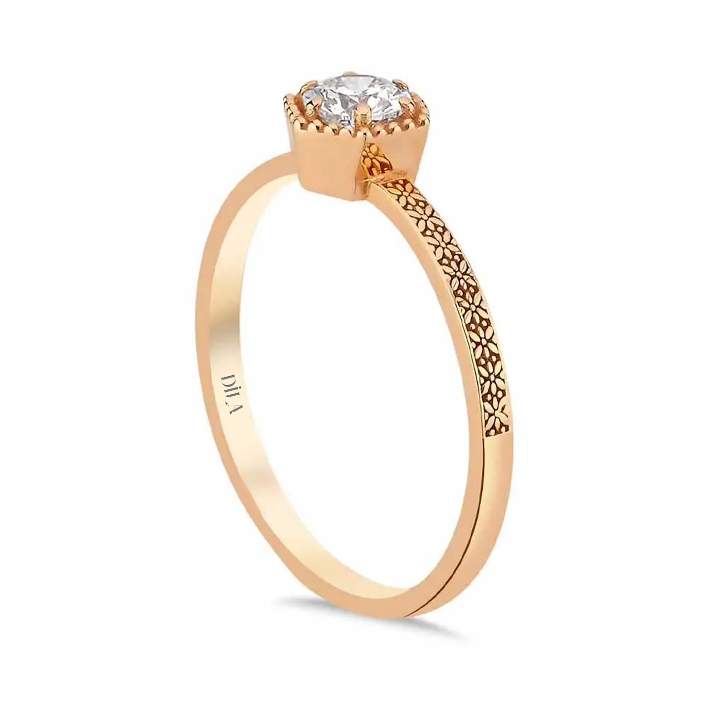 0,24 Karat Pırlanta Özel Tasarım Vintage Yarımtur Yüzük