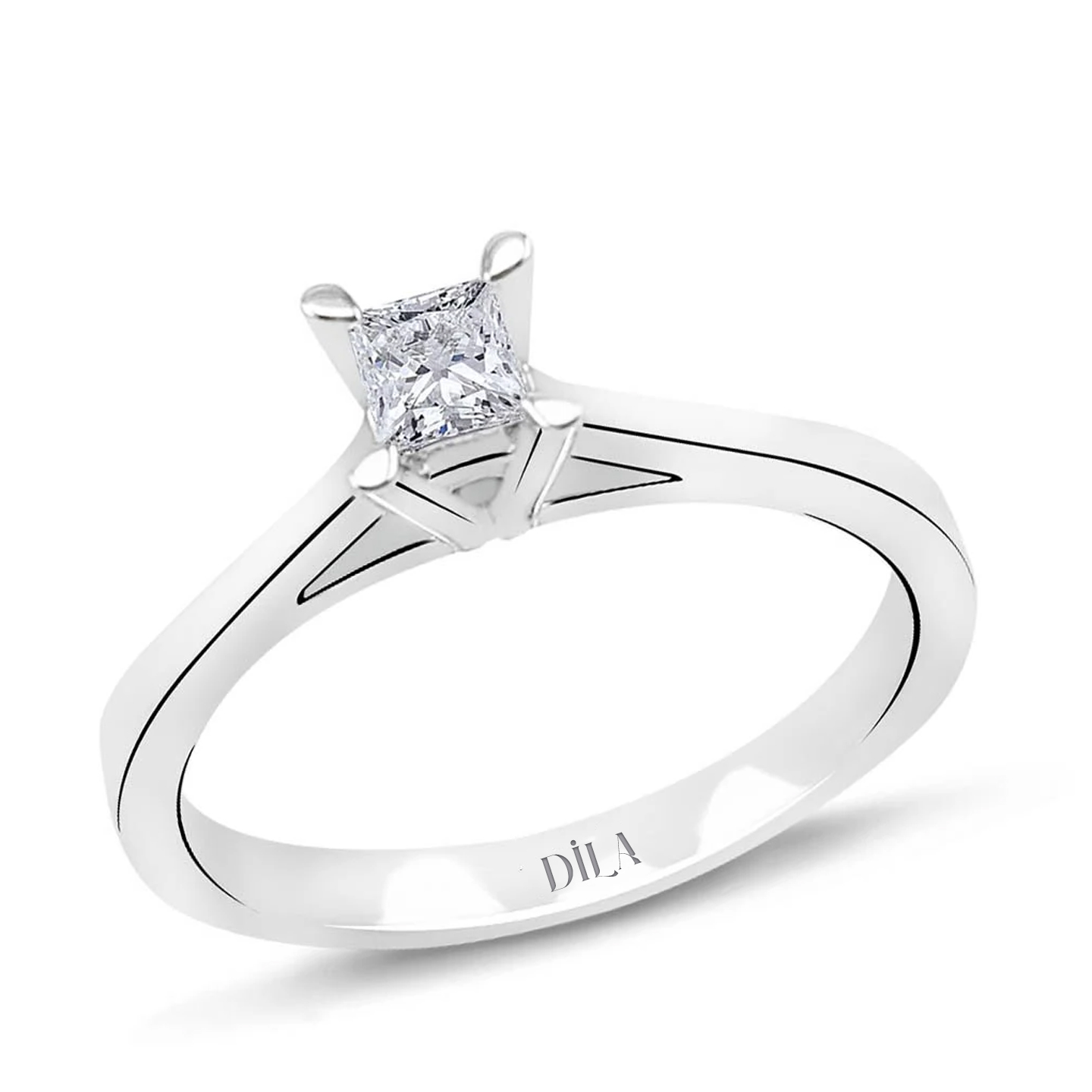0,25 Karat Pırlanta Tektaş Prenses Yüzük F Renk