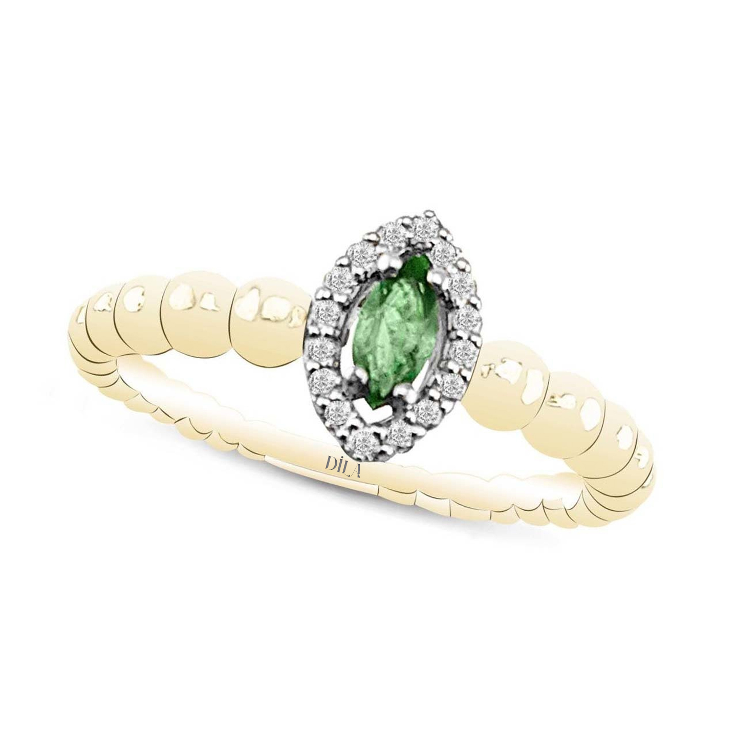 0,29 Karat Pırlantalı Zümrüt Yüzük F Renk