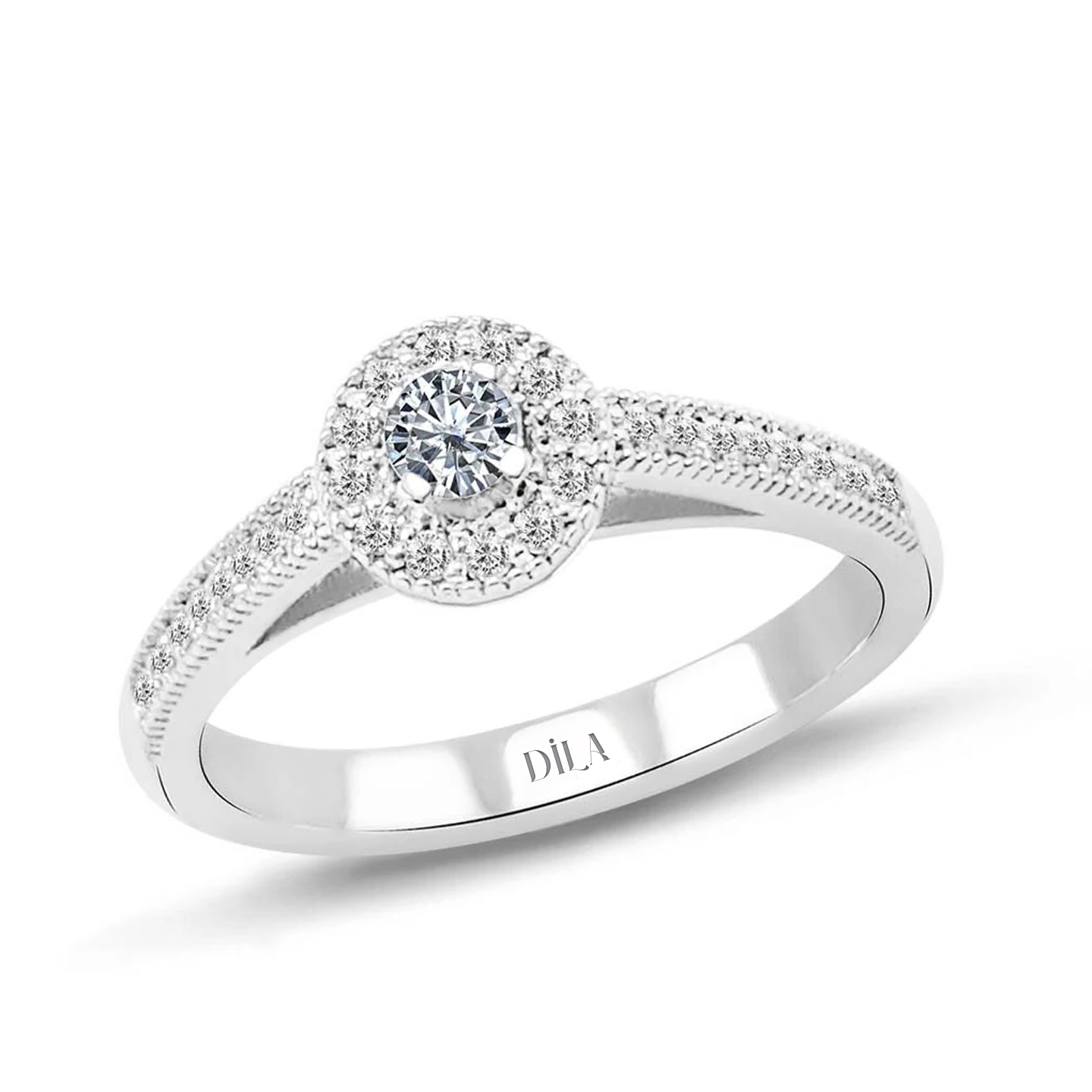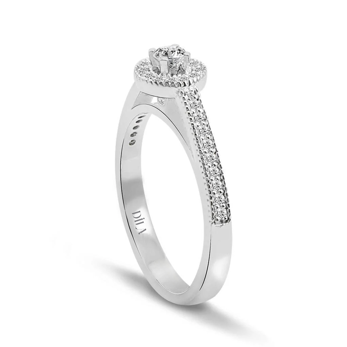 0,32 Karat Pırlanta Kenar Taşlı Tektaş Yüzük F Renk