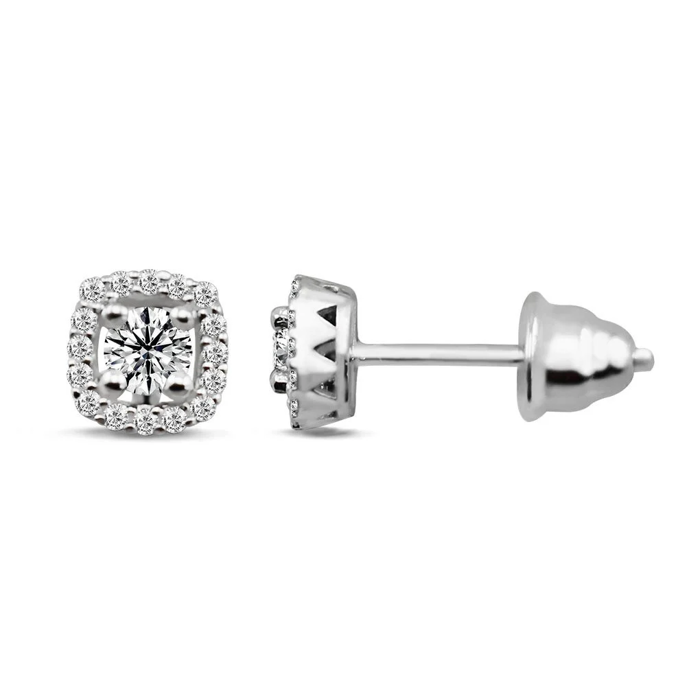 0,37 Karat Pırlanta Kenar Taşlı Tektaş Küpe F Renk
