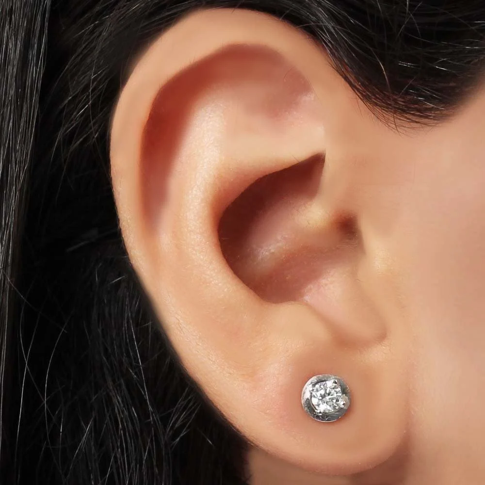 0,38 Karat Pırlanta Tektaş Küpe F Renk