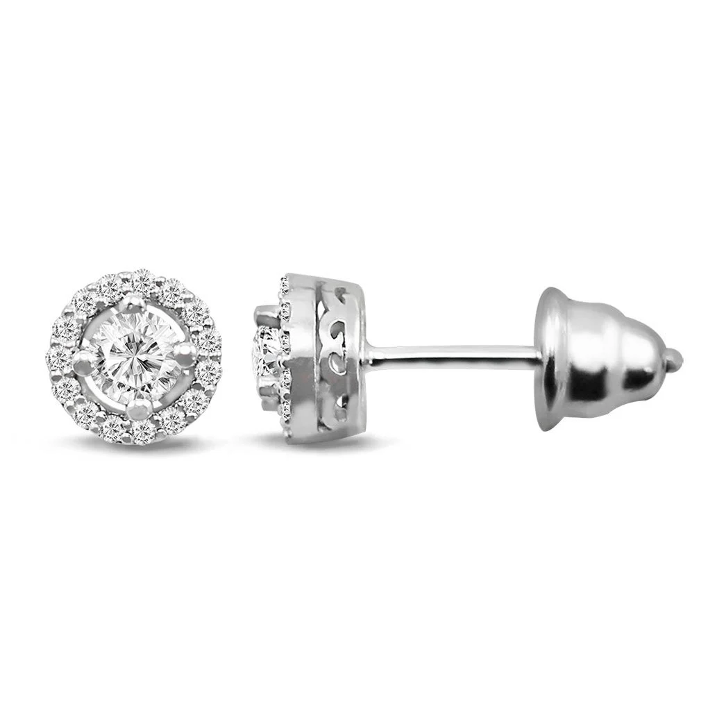 0,39 Karat Pırlanta Kenar Taşlı Tektaş Küpe F Renk