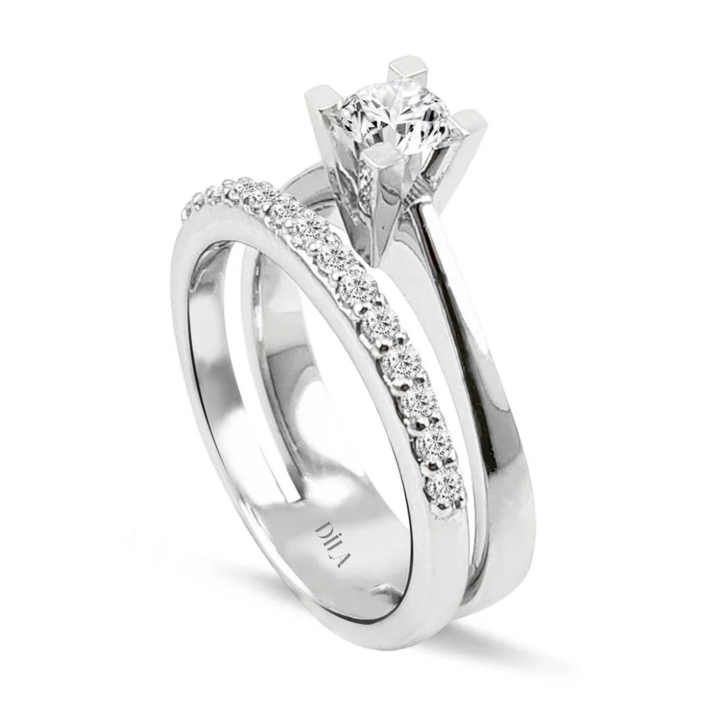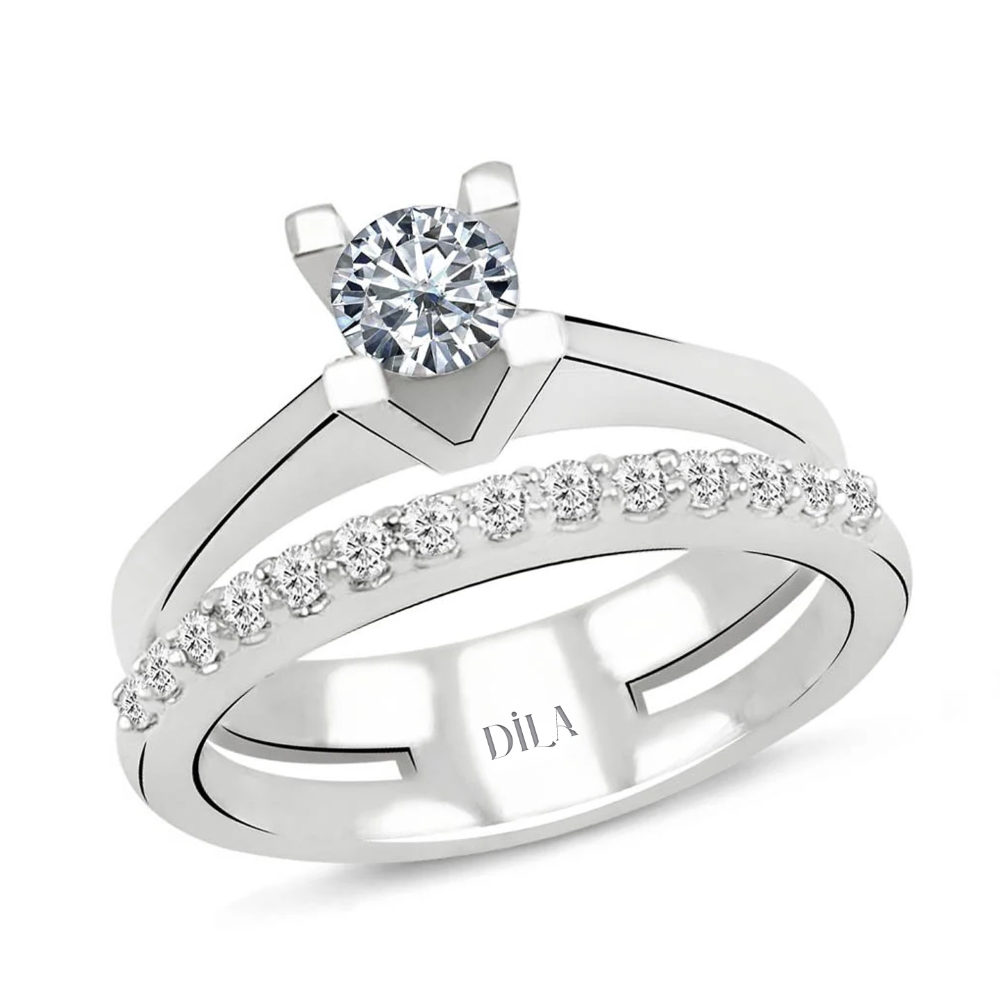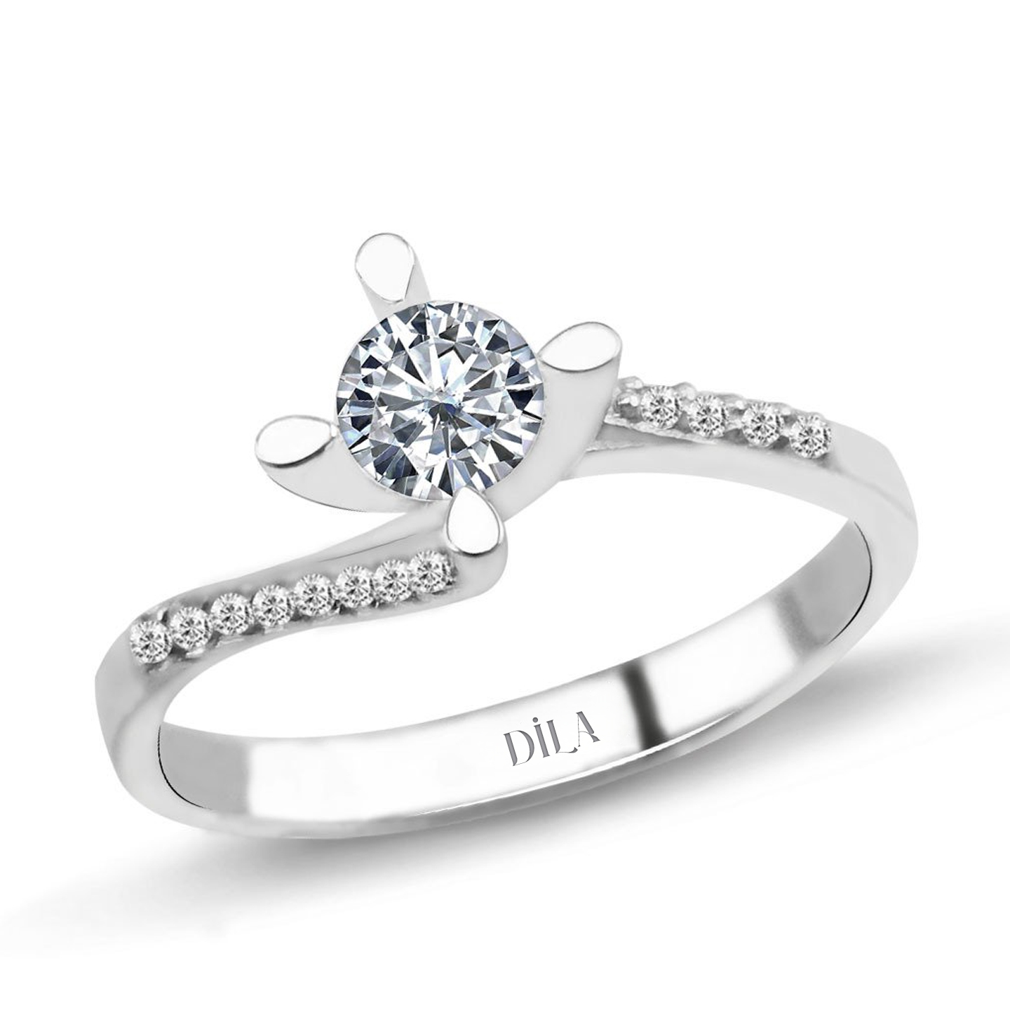 0,45 Karat Kenar Taşlı Pırlanta Tektaş Yüzük F Renk