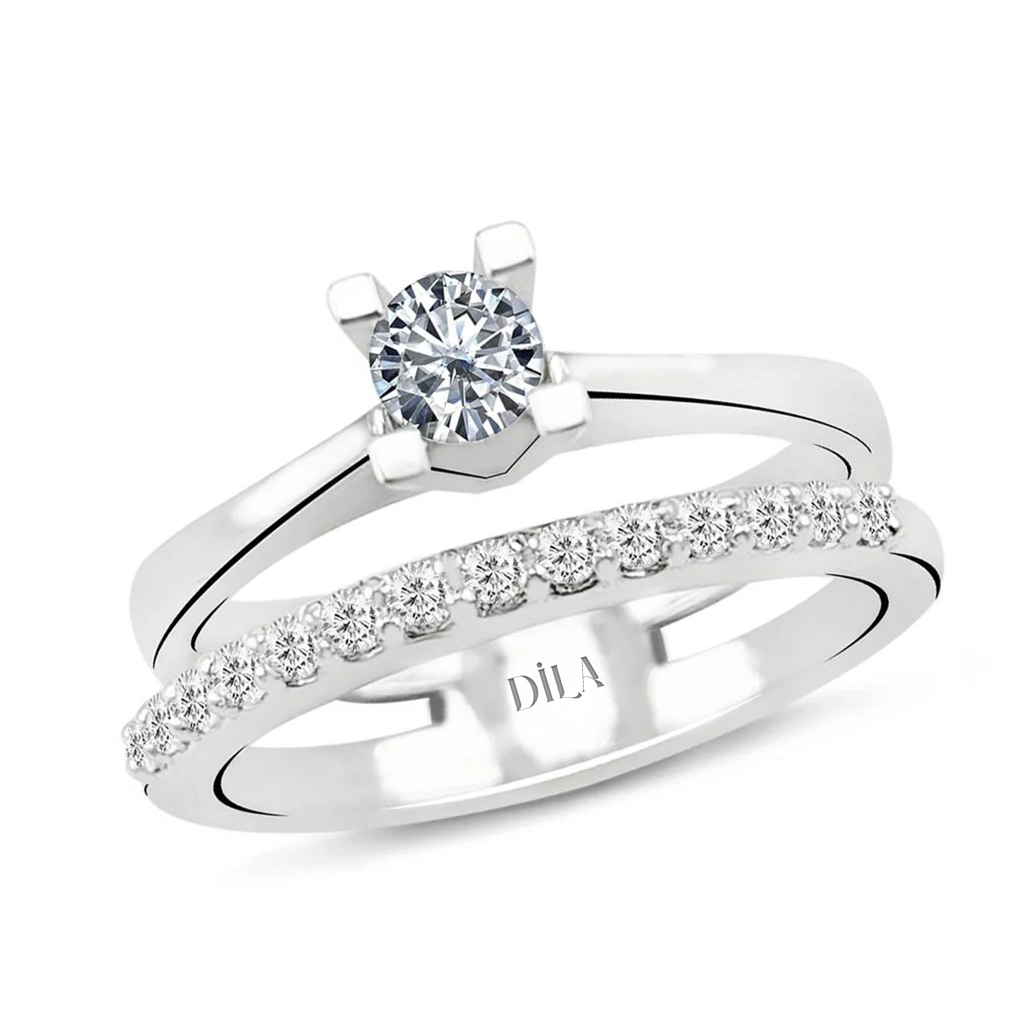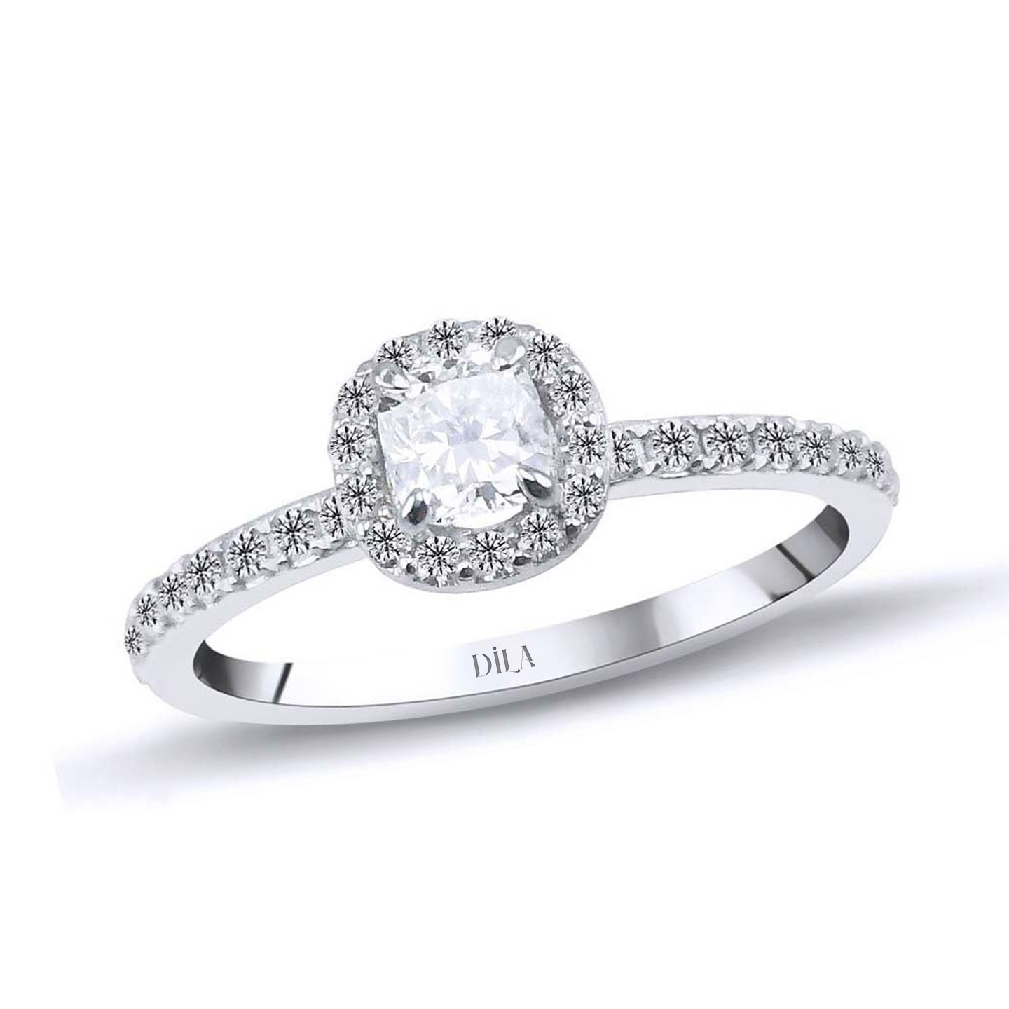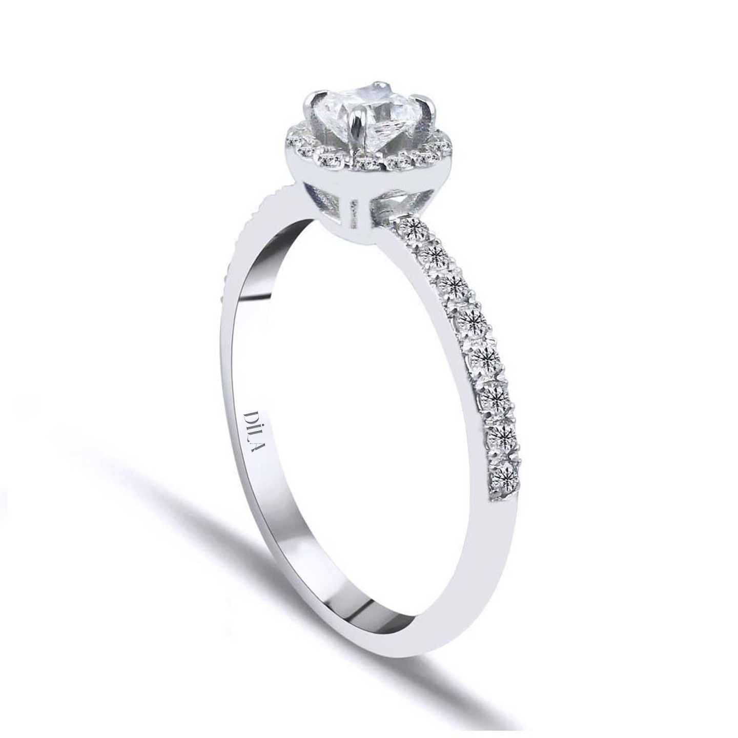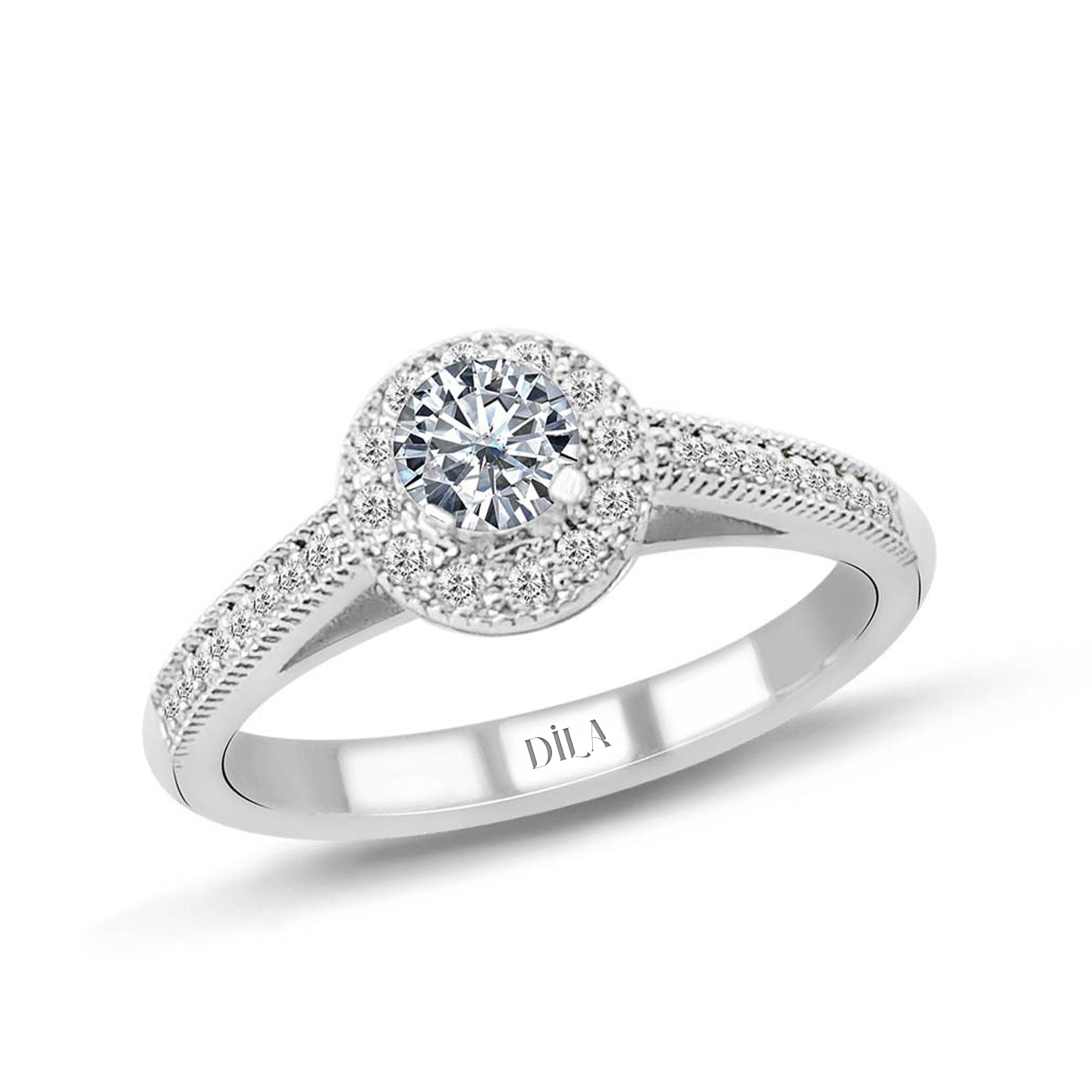 0,51 Karat Pırlanta Kenar Taşlı Tektaş Yüzük F Renk