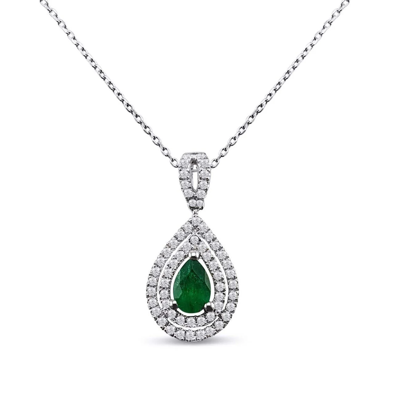 0,60 Karat Pırlantalı Zümrüt Kolye F Renk