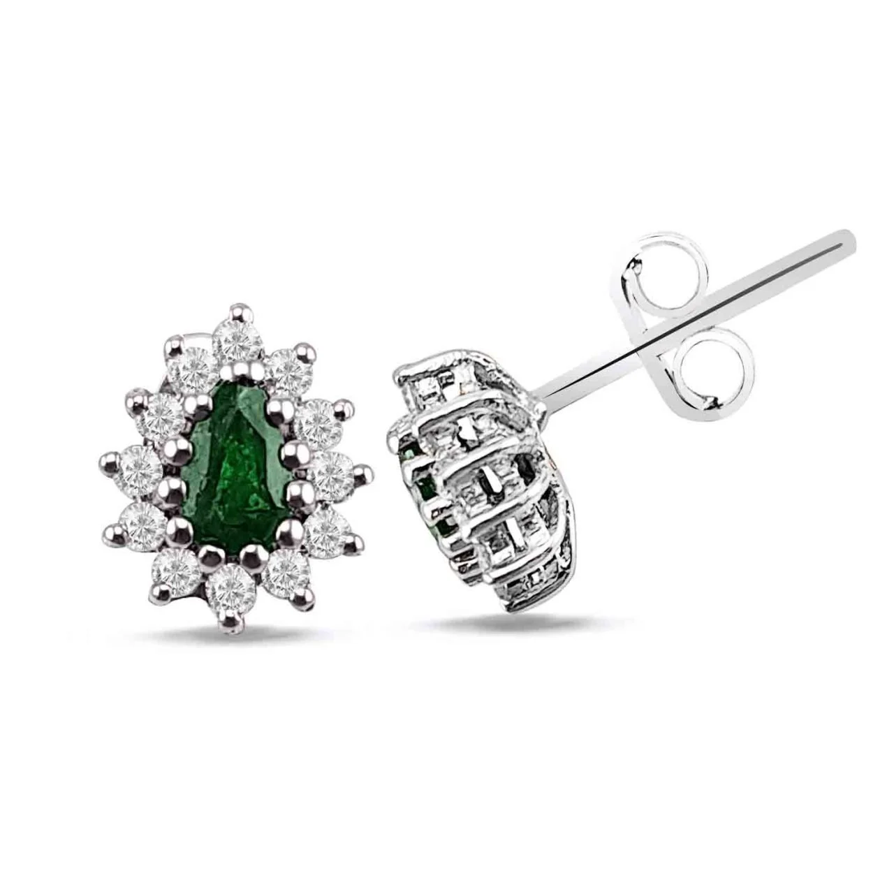 0,60 Karat Pırlantalı Zümrüt Küpe F Renk