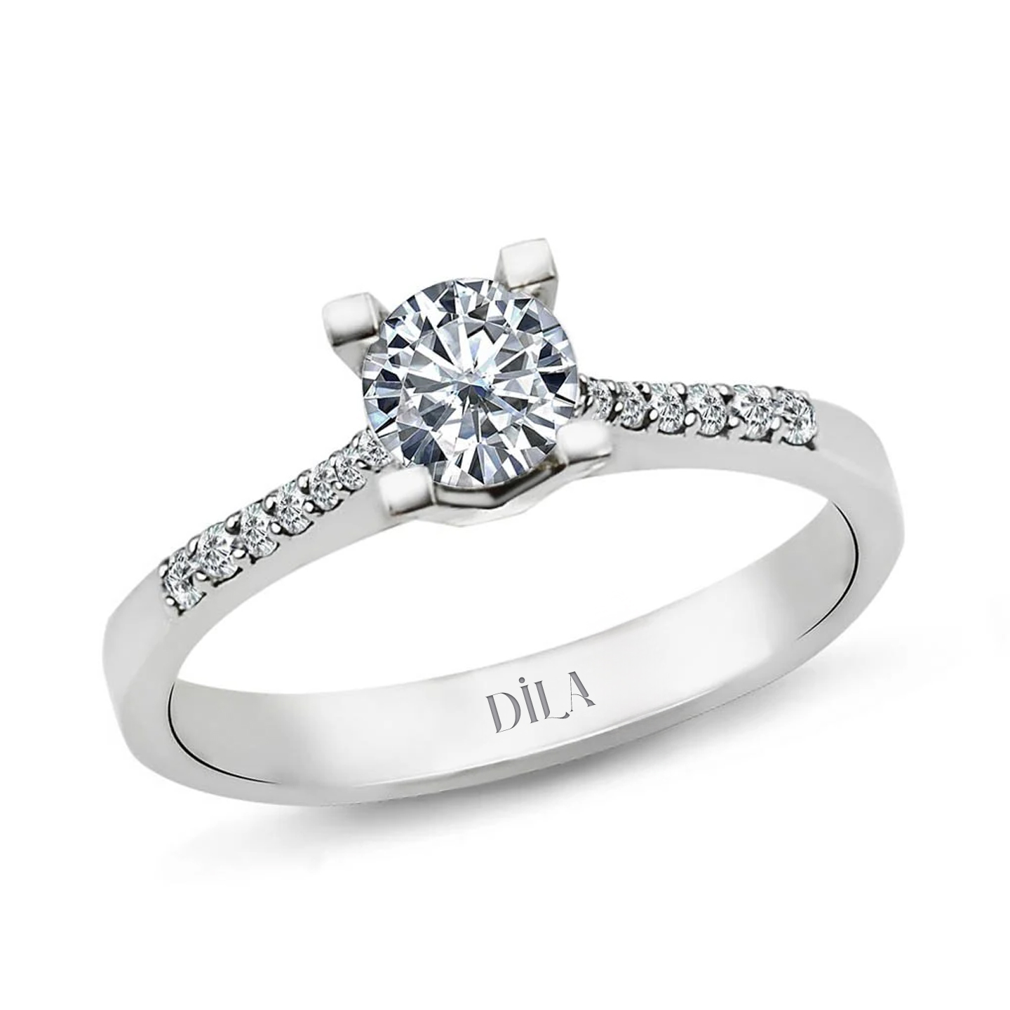 0,64 Karat Pırlanta Kenar Taşlı Tektaş Yüzük F Renk