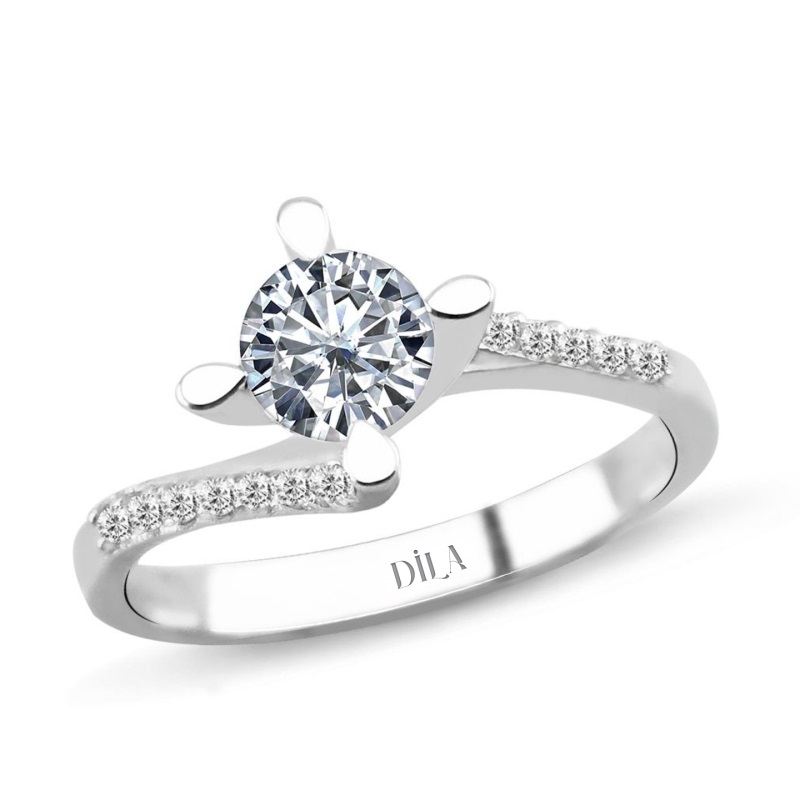 0,73 Karat Kenar Taşlı Pırlanta Tektaş Yüzük F Renk