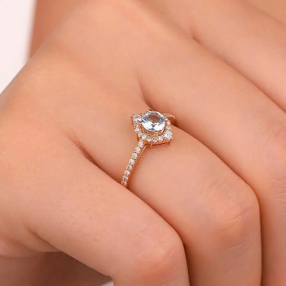 0,74 Karat Pırlantalı Vintage Sky Blue Topaz Yüzük