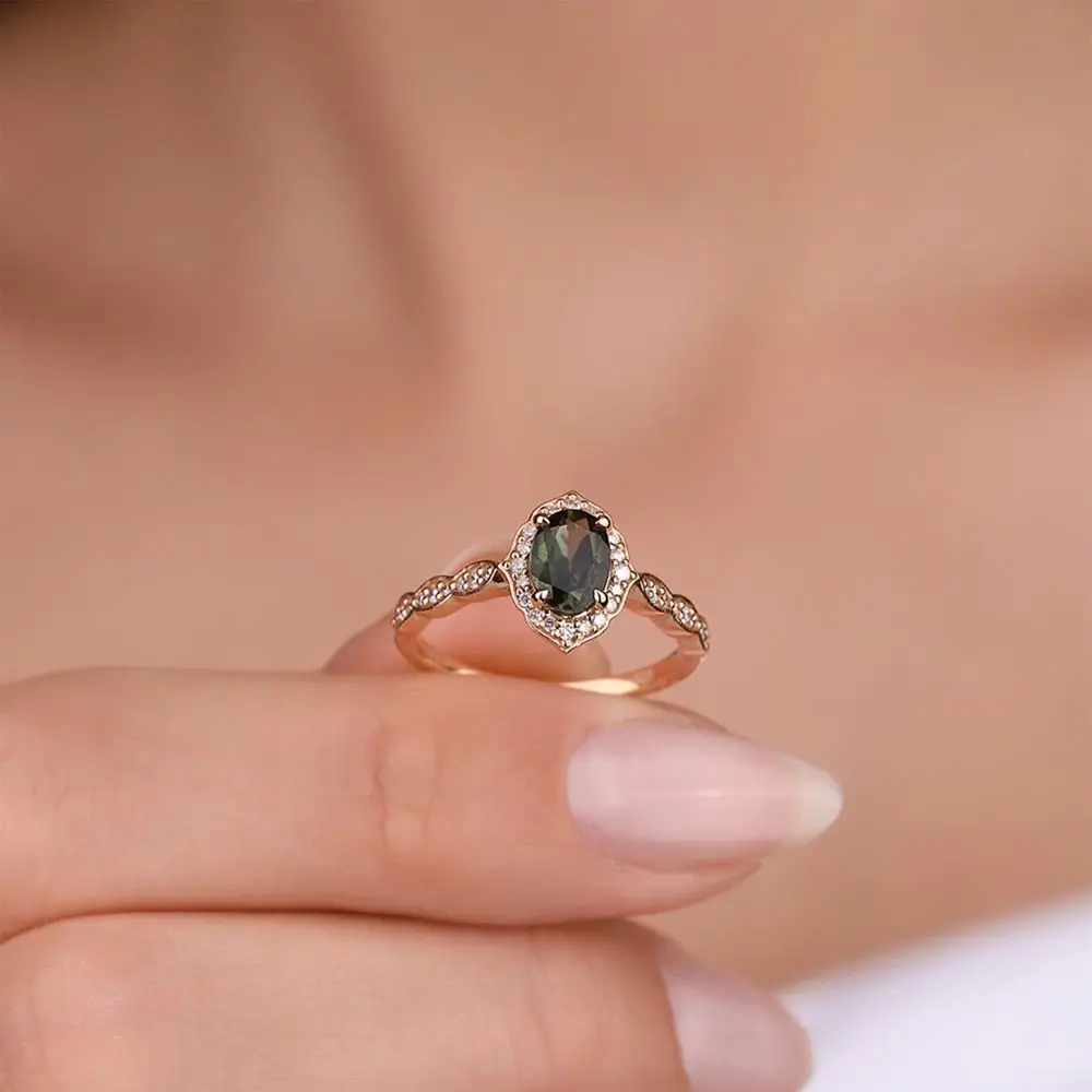 0,75 Karat Pırlantalı Vintage Turmalin Yüzük