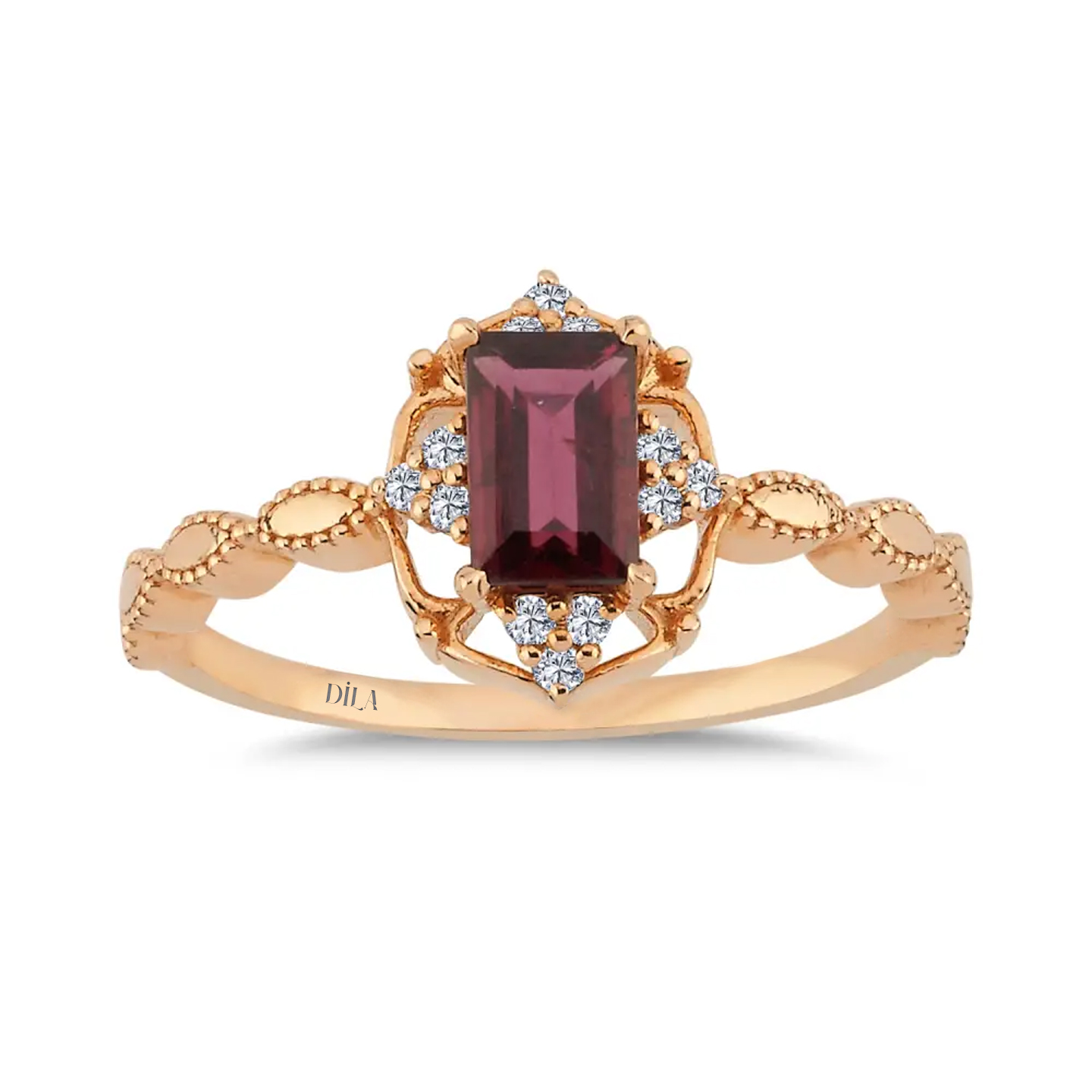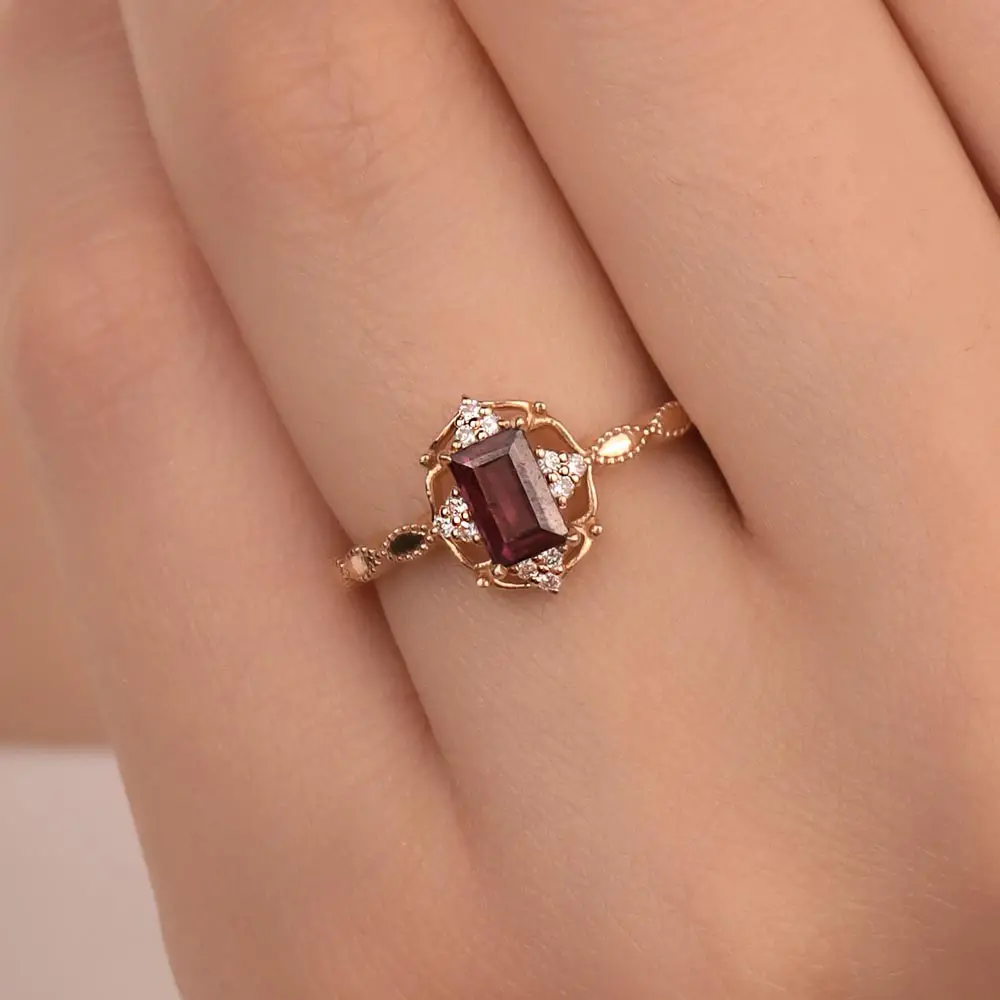 0,84 Karat Pırlantalı Vintage Rhodolite Yüzük