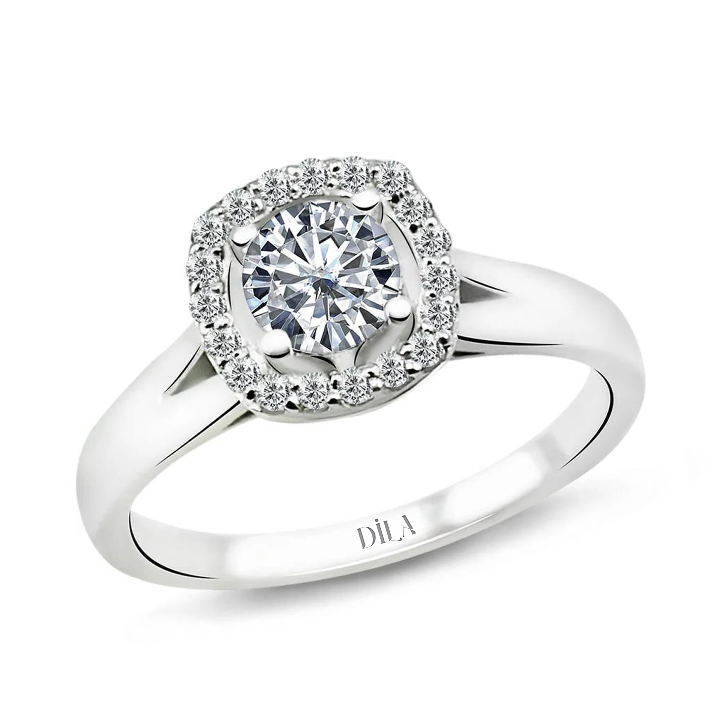 0,86 Karat Pırlanta Kenar Taşlı Tektaş Yüzük F Renk