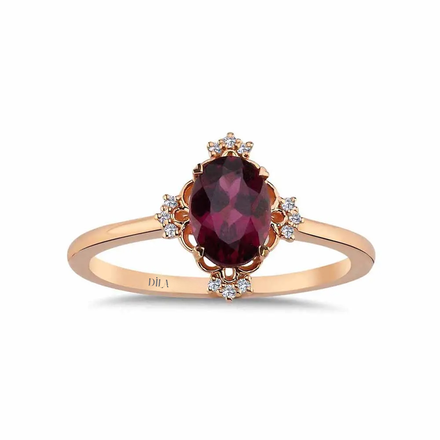 1,08 Karat Pırlantalı Vintage Rhodolite Yüzük