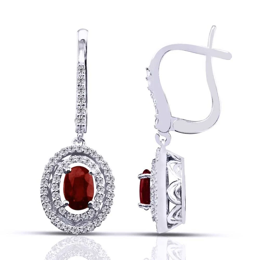 1,55 Karat Pırlantalı Yakut Küpe F Renk
