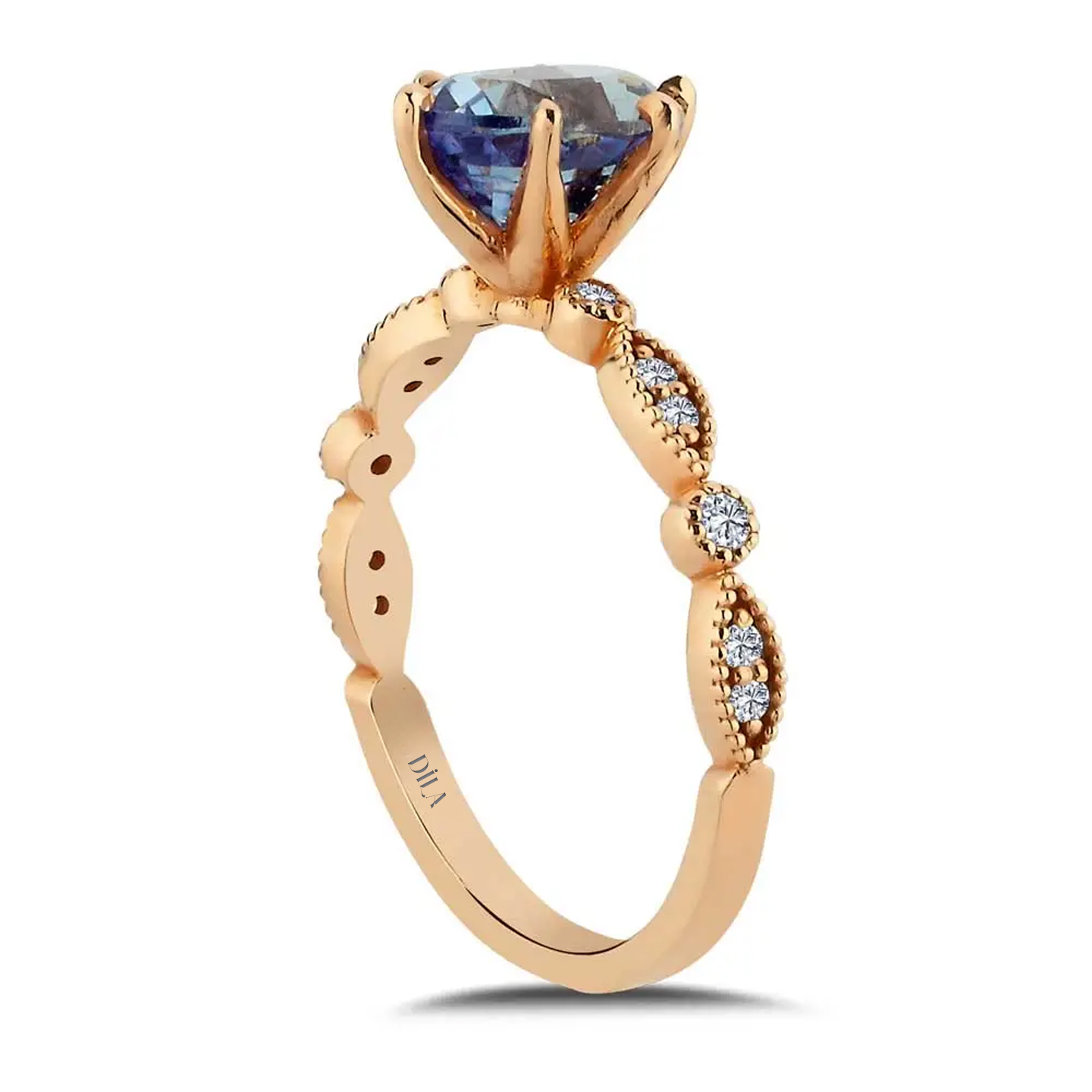 2,10 Karat Pırlantalı Safir Vintage Yüzük