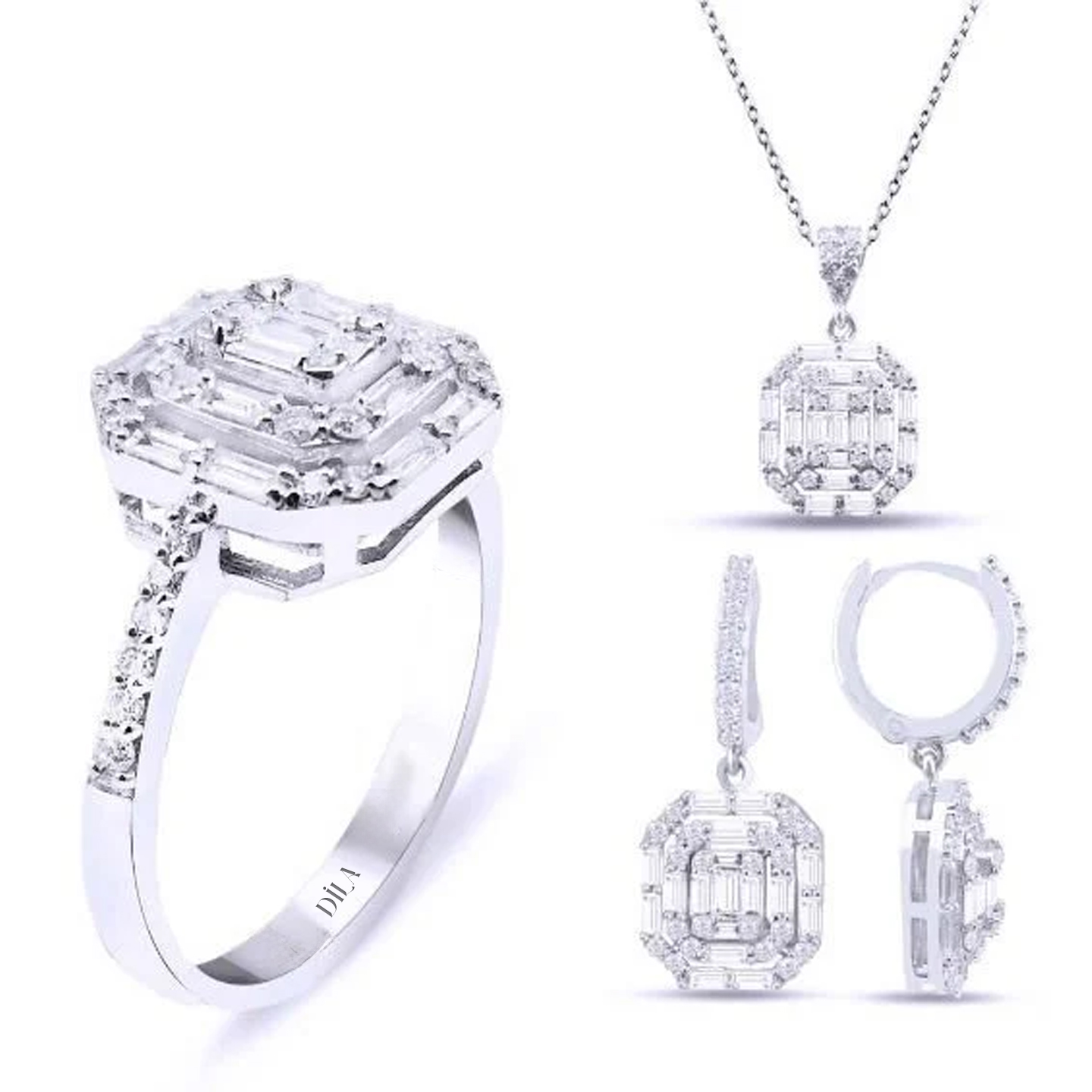 2.42 Karat Pırlanta Baget Set F Renk 14K