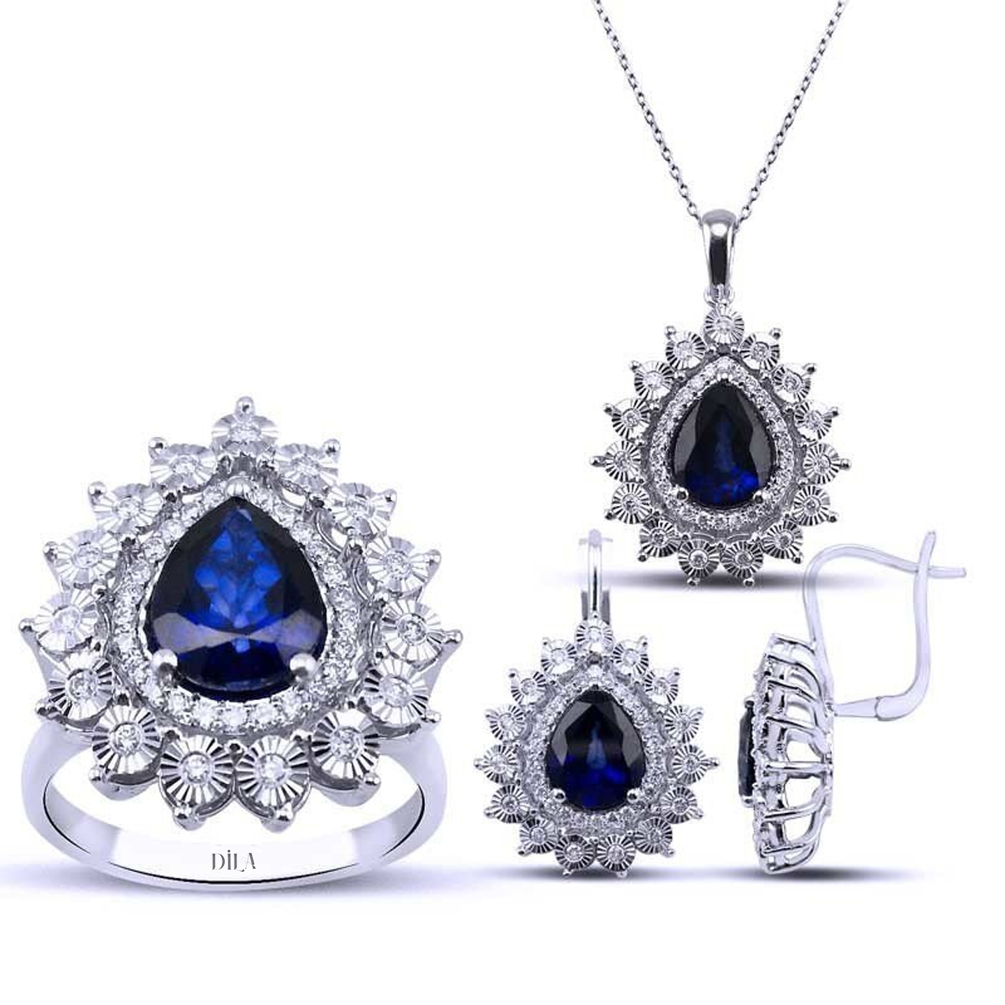 3.09 Karat Pırlantalı Safir Set F Renk