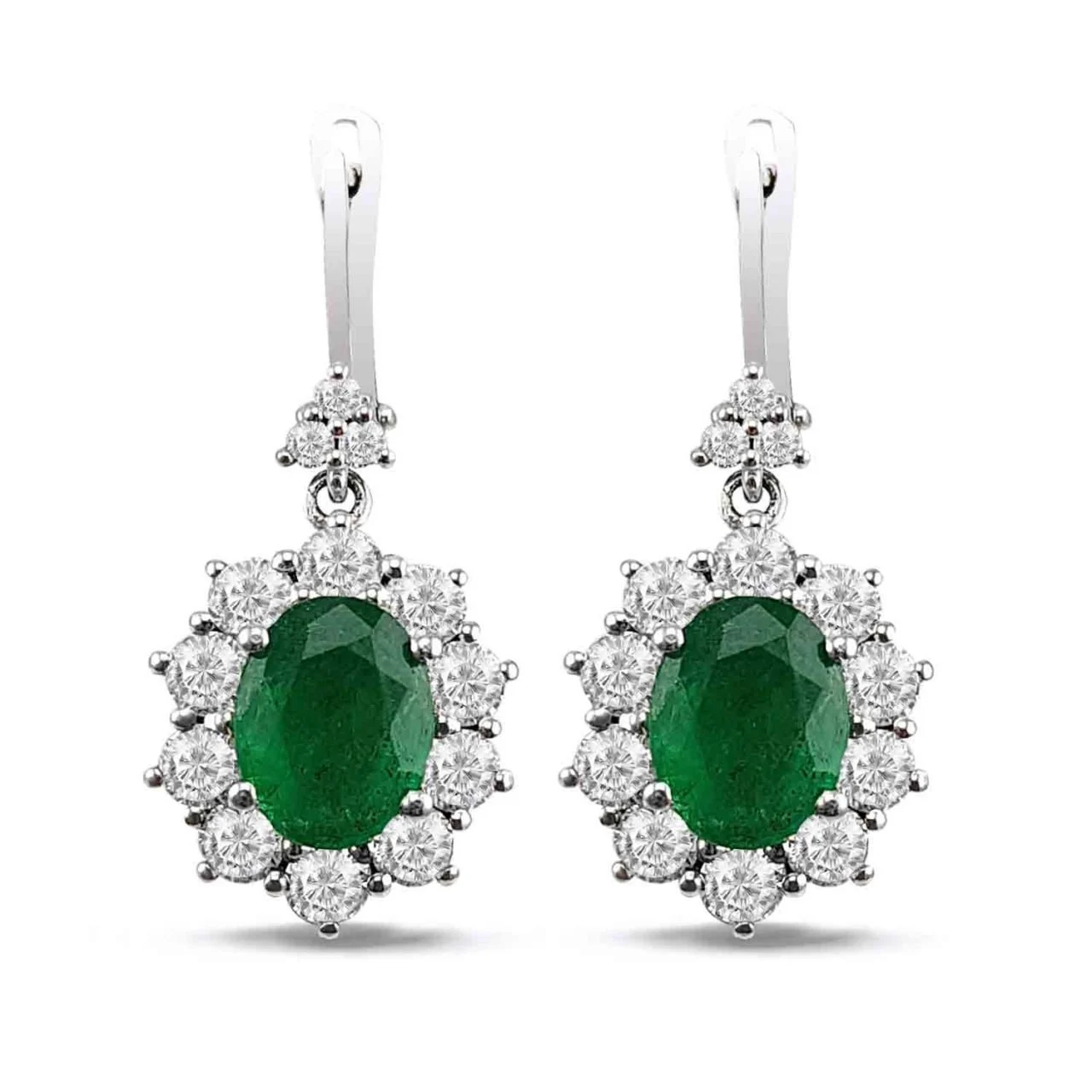 5,21 Karat Pırlantalı Zümrüt Küpe F Renk