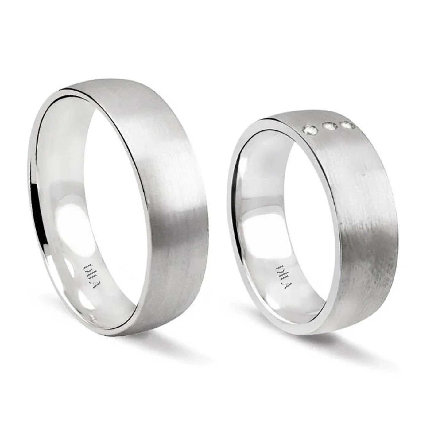 Bombeli Taşlı Beyaz Altın Çift Alyans